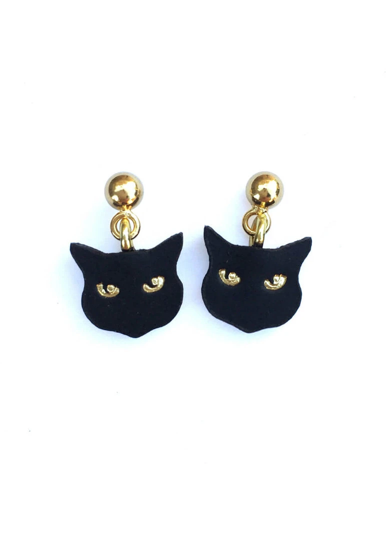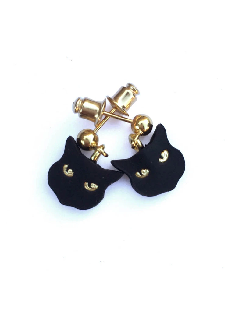 Designer Rowenna gets her inspiration from all corners of the world, and she found it at All Hallows Eve: black cats! These sweet kitties are looking a little naughty with their handpainted gold-coloured eyes and are dangling from a golden button on a stud.