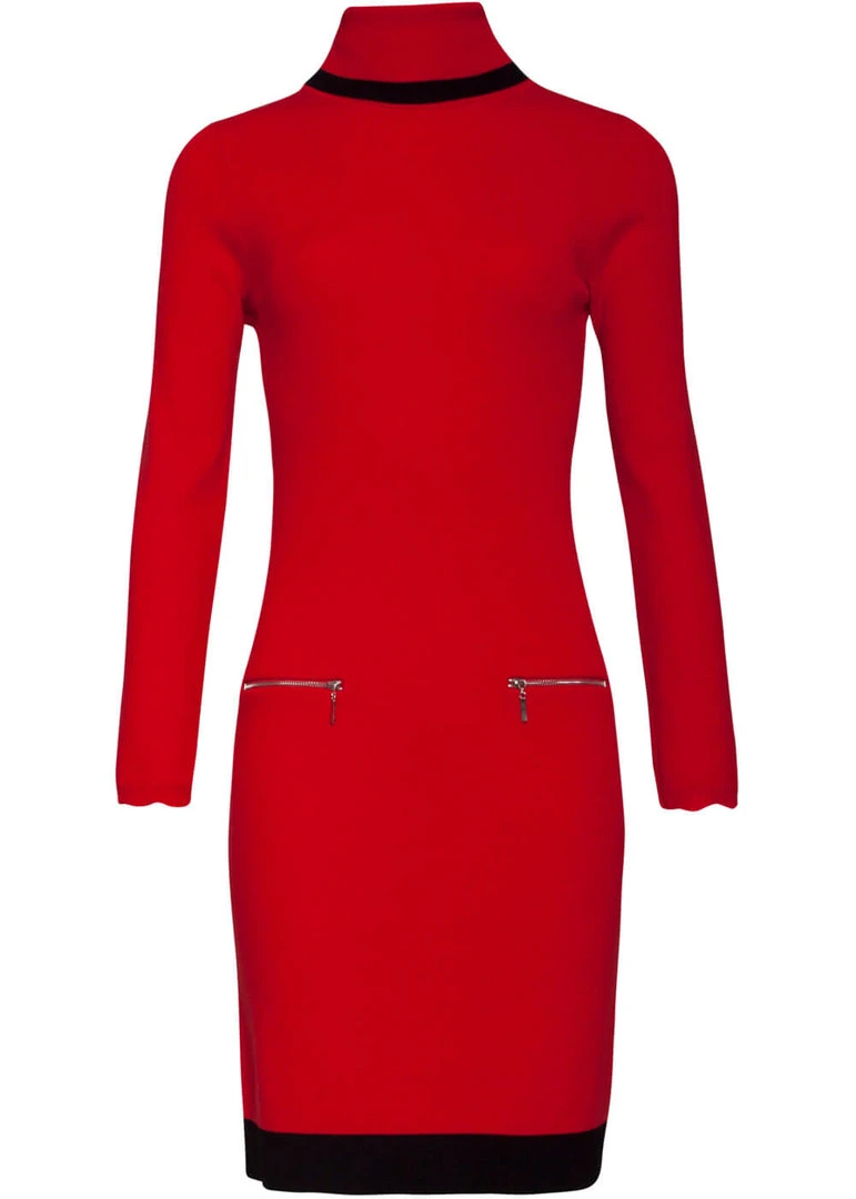 Olivia does not only have the perfect retro colours, she’s also knitted for the ultimate 70’s look! She’s made of a stretchy mix with viscose, so you can simply slip into her. The decorative zippers, the little collar and the wavy sleeve ends make Olivia a beauty you don’t want to miss out on.