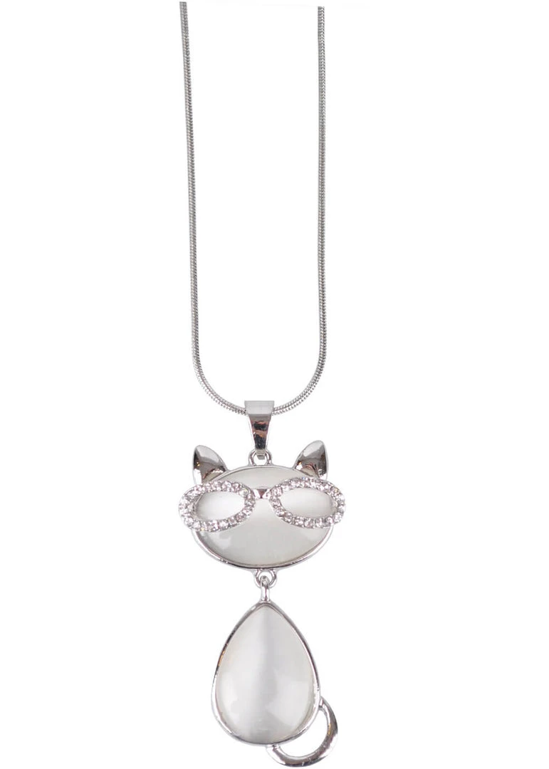 How do you make a necklace with a cat pendant even cuter? By giving the kitty some glasses and making her FAB! Because of the slight cut crystals the glasses stand out even more.