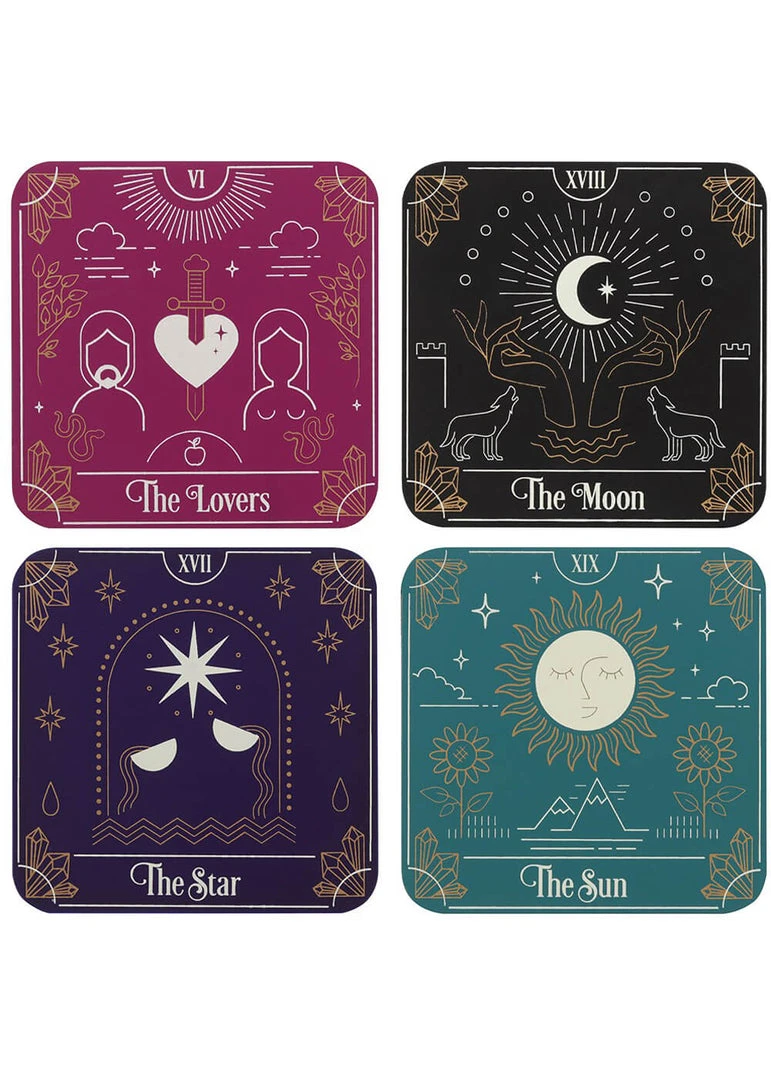 This mysterious set consists of 4 coasters, each of them inspired by a tarot card. Their back is covered in cork and the front is matte. They come in a holder and make a fantastic occult present, if you can let them go, that is 😉
