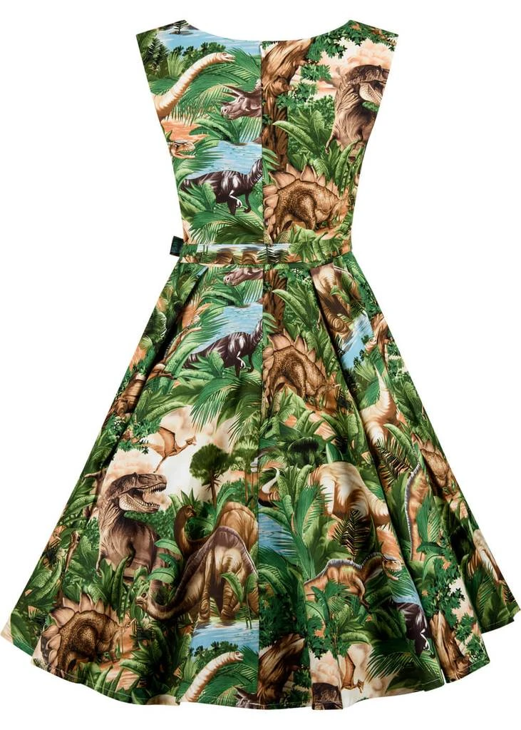 Suddenly you just knew: you deperately need a dinosaur dress… Well, we got you girl! The Rosa model has a pretty, high neck, with a sash that accentuates the waist. From the waist down pleats make for a full skirt that combines perfectly with one of our petticoats for a little extra flair. She is made from no stretch cotton and is fastened by a zipper on the back. At a length of 1,70 m she reaches down past the knee.