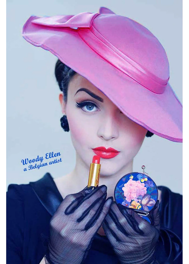 We can’t do without: a good mirror in our bag! This beauty has a normal side as well as a magnifying one. The microfiber outside has both sides showing the gorgeous artwork, which comes out perfectly thanks to the silver coloured kiss-lock.