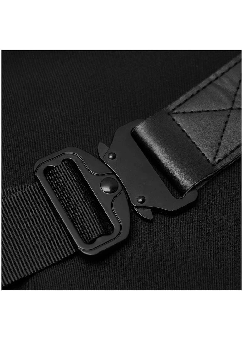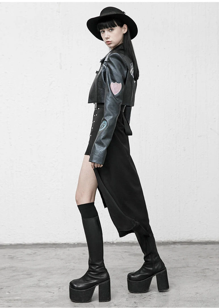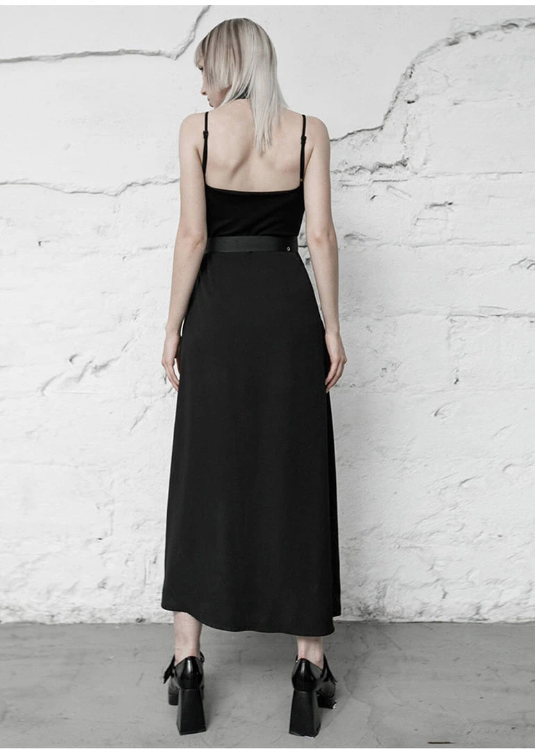 A special detail is the skirt, which has a big split and as bonus an underskirt that peeks out, what an edgy look that is! The waist is accentuated with the removable belt with the metal detail, and as icing on the cake, she comes with a choker. She closes with a zipper on the side.