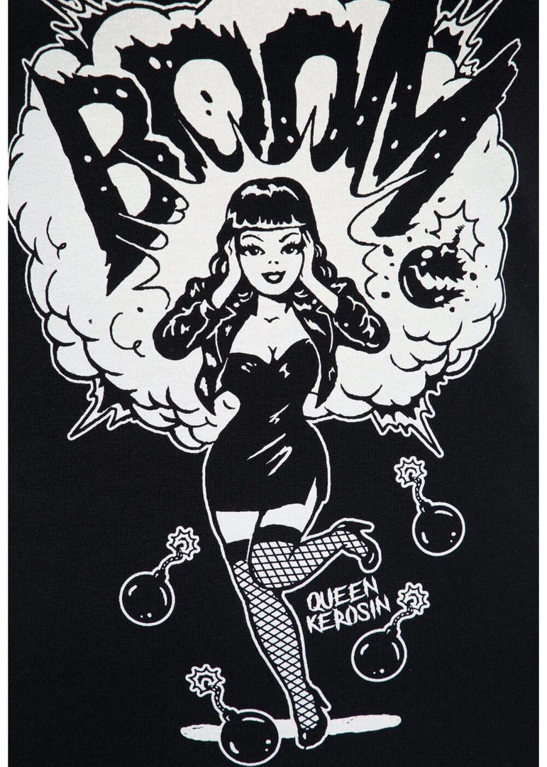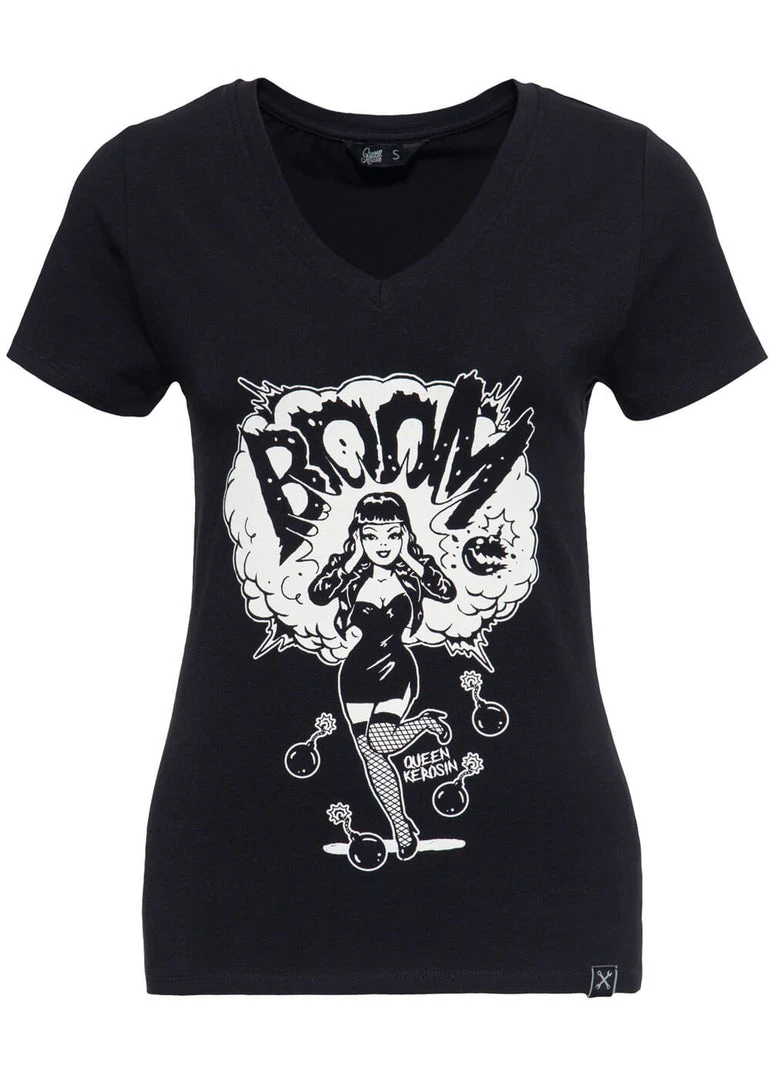 Queen Kerosin Boom Girly T-Shirt Black New In