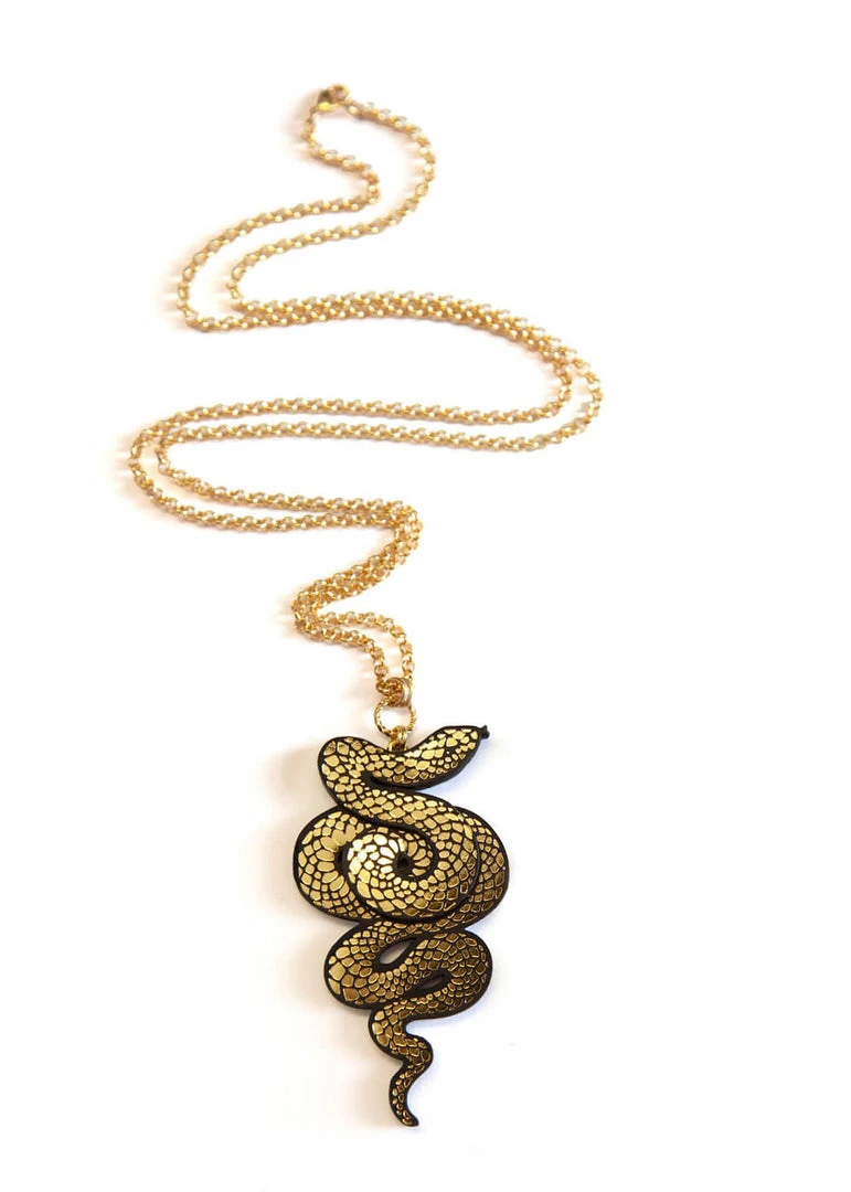 Rosita Bonita Serpent Snake Necklace Gold Black New In