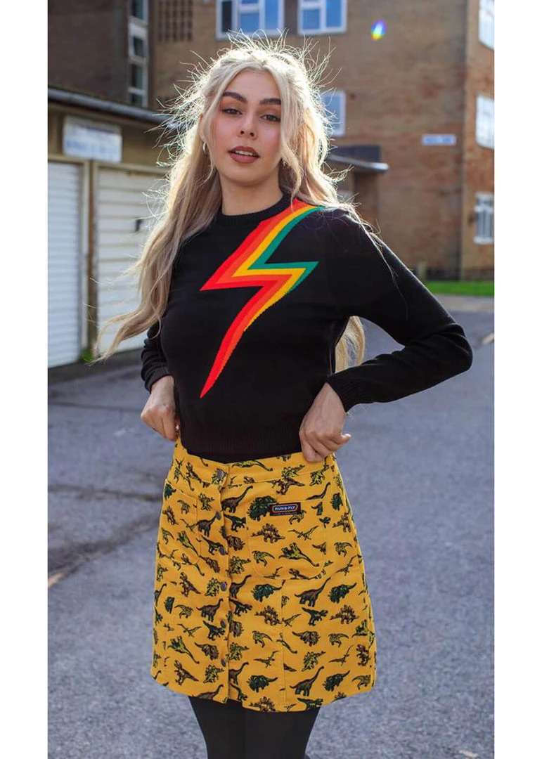 With her length until the waist, she’s short and oh so cool! Her cozy 100% acrylic make her fantastically warm and FAB at the same time 😉 The ribbed seams at the bottom, neckline and the ends of the long sleeves keep the warmth inside. On trousers or a skirt, you’ll wantt o wear this cutie right away! She’s made in England.