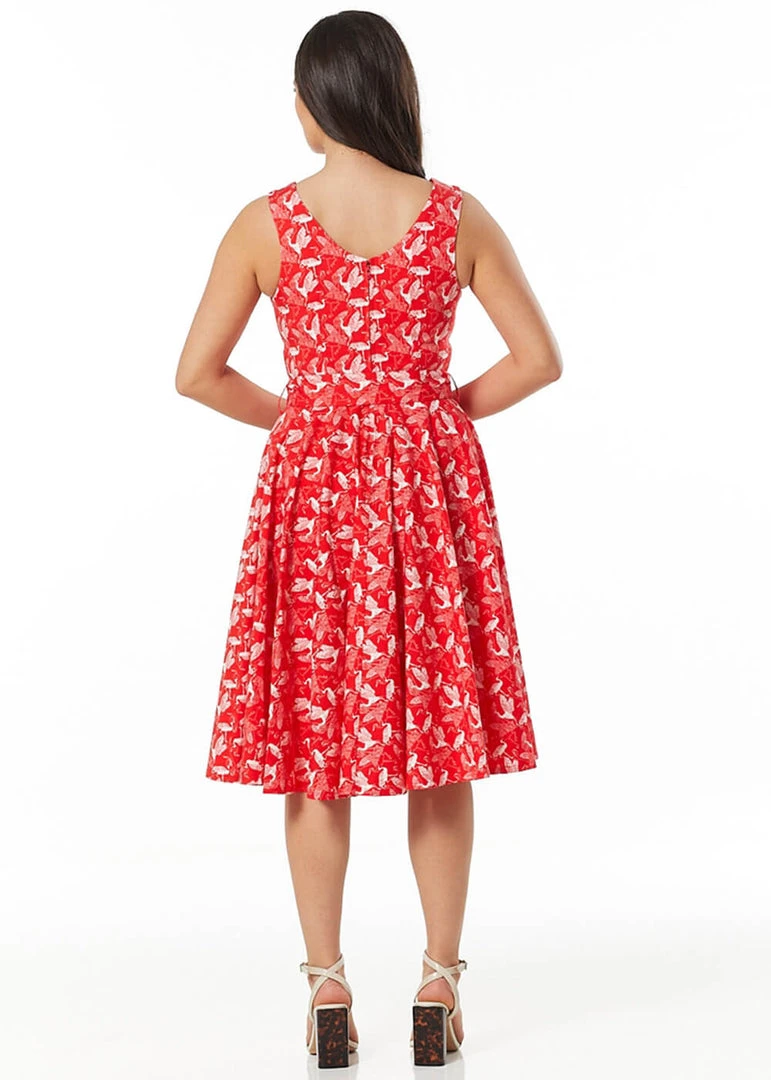 Sheen Timeless Rina Birds 50’s Swing Dress Red New In