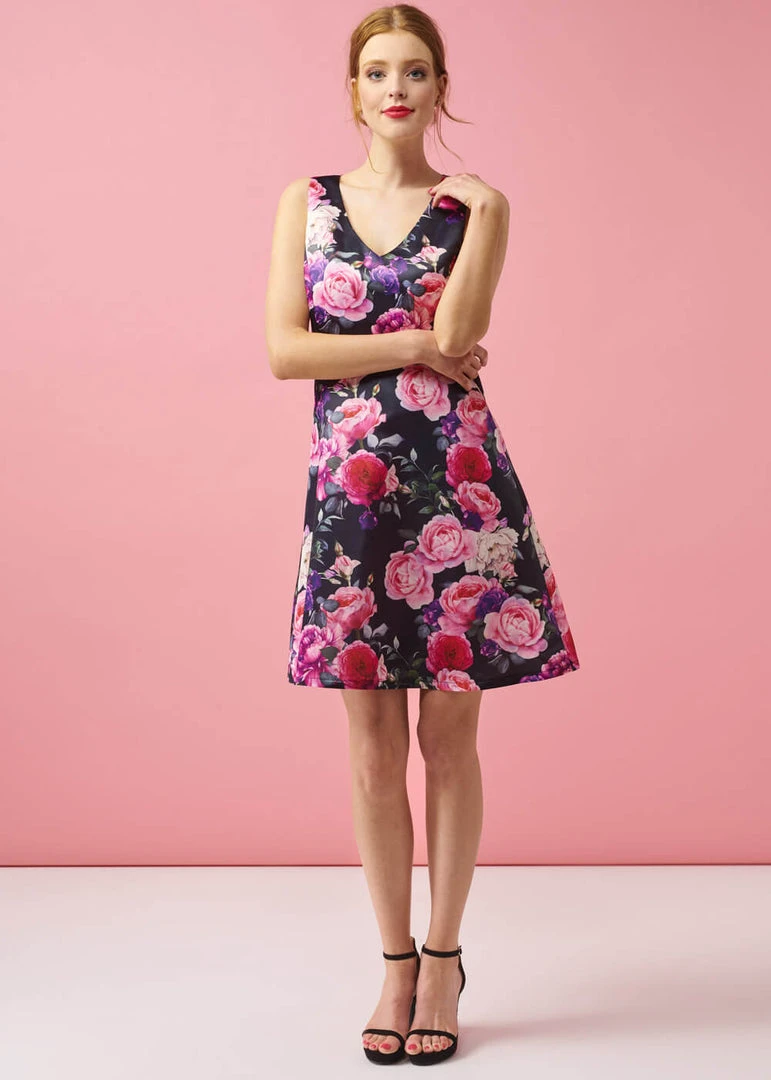 The romantic flowers are splashing off of this cutie, while the princess seams make your curves shine. She is made of a firmer fabric with no stretch, making her fit smaller than the other dresses by Smashed Lemon. Be sure to check our sizing chart!