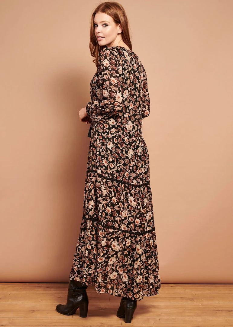 Gypsy-Chic or incredibly 70’s, she simply is stunning with these flowers that look like they were painted! The high neckline is decorated with lace edges and the strings you close the peekaboo with end in lovely tassels.
