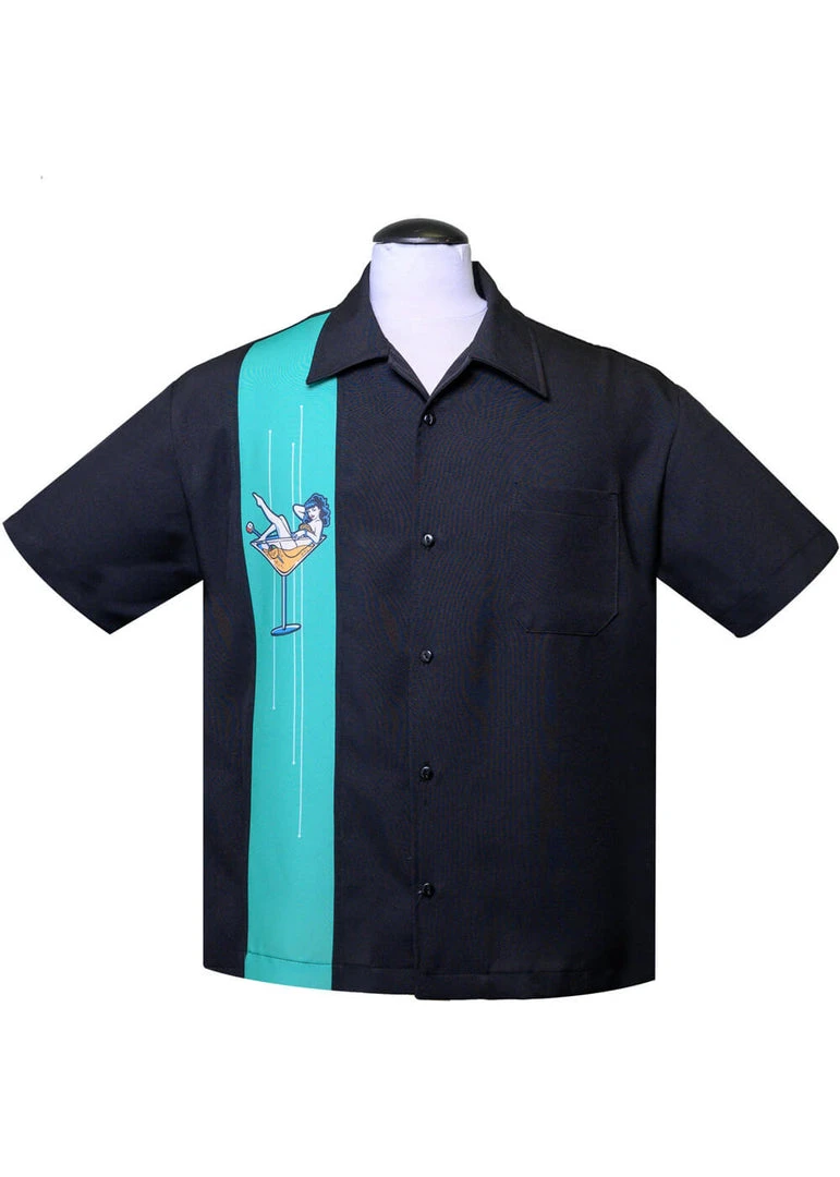 Steady Clothing Mens Martini Girl Single Panel Bowling Shirt Black Mint New In