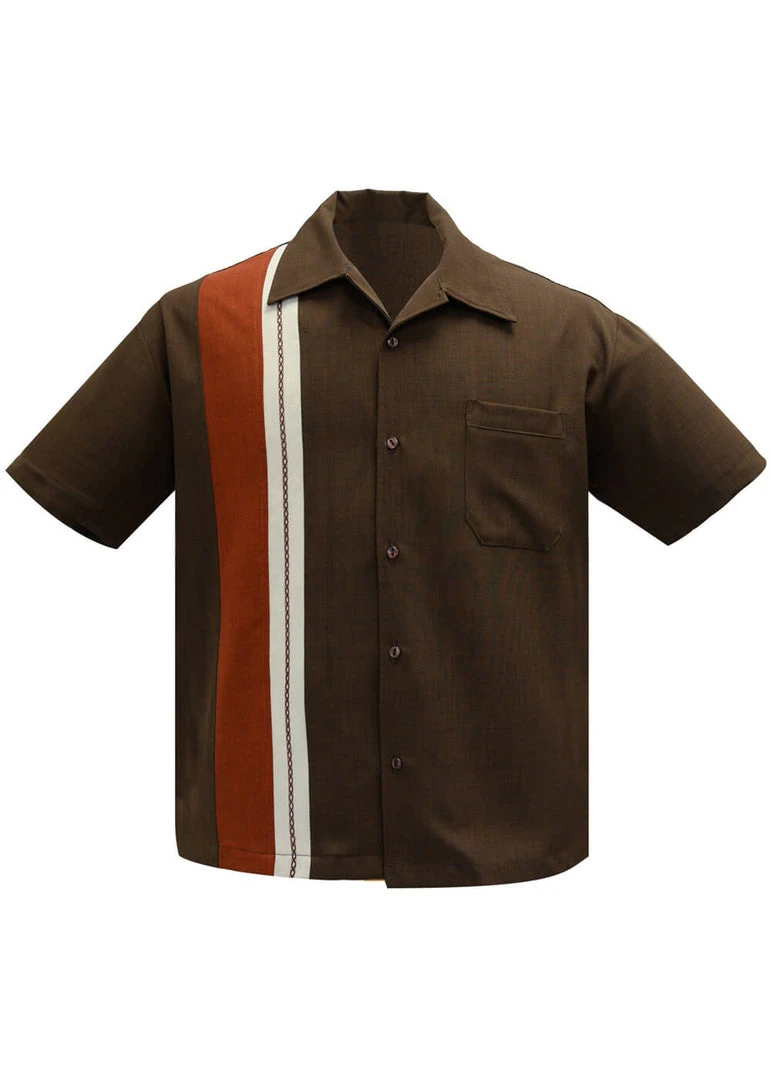 Steady Clothing Mens The Charles Bowling Shirt Brown Rust